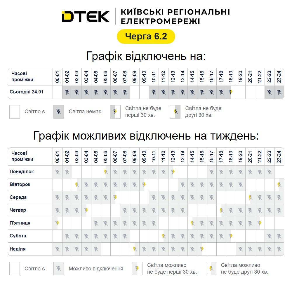 Графік відключень на 24 січня для Тетіївської громади Підгрупа 6.1: світла не …