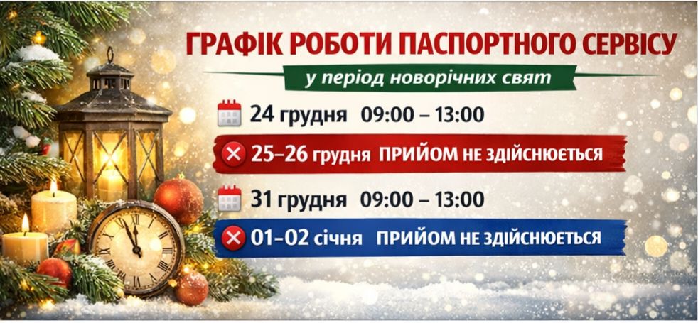 ❌ 25 та 26 грудня — прийом документів не здійснюється