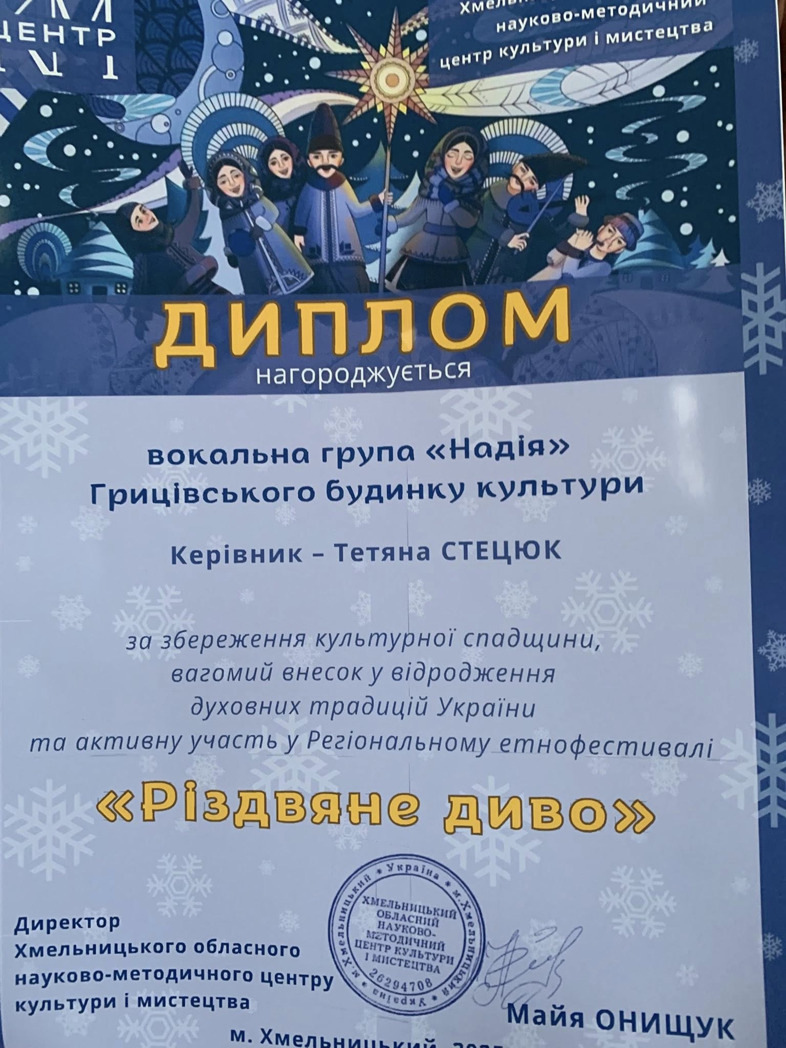 Сьогодні наша вокальна група «Надія» взяла участь у традиційному Регіональному етнофестивалі «Різдвяне диво».