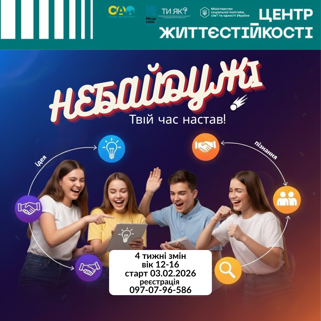 📢 Громадська організація «Створюй. Дій. Досягай» оголошує набір учасників на молодіжний проєкт «НЕБАЙДУЖІ» для підлітків віком від 12 до 16 років.