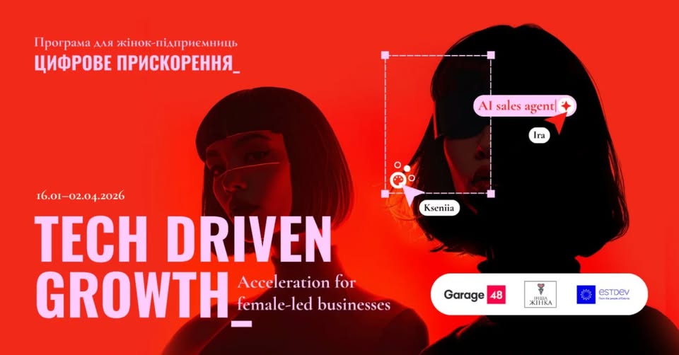 Громадська організація у співпраці з Garage48 та за підтримки Естонського центру міжнародного розвитку (ESTDEV) оголошує набір на акселераційну програму, спрямовану на підтримку засновниць бізнесів на ранніх етапах розвитку. Програма покликана сприяти масштабуванню підприємницької діяльності шляхом упровадження цифрових інструментів, технологій та розвитку лідерських компетентностей.