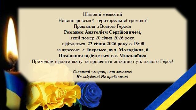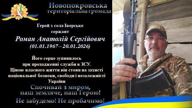 20 січня 2026 року при проходженні служби в ЗСУ зупинилося серце Романа Анатолія Сергійовича,