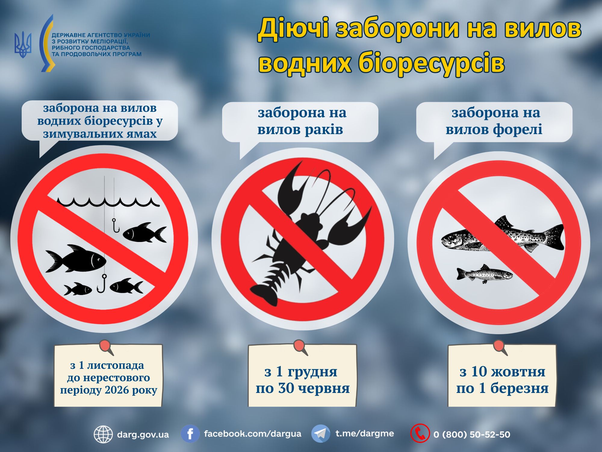 ▶️Також рибалкам необхідно пам’ятати про діючі сезонні заборони: