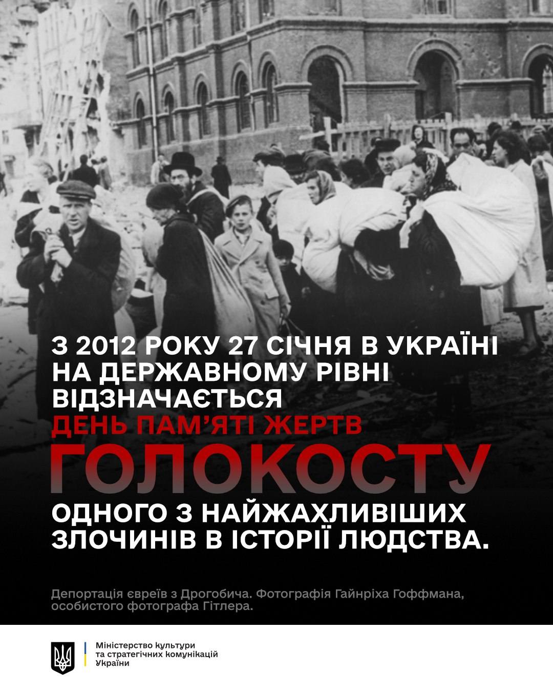🕯 У Міжнародний день пам’яті жертв Голокосту ми вшановуємо всіх невинно вбитих нацистами людей під час геноциду. Вічна пам’ять невинним жертвам Голокосту.