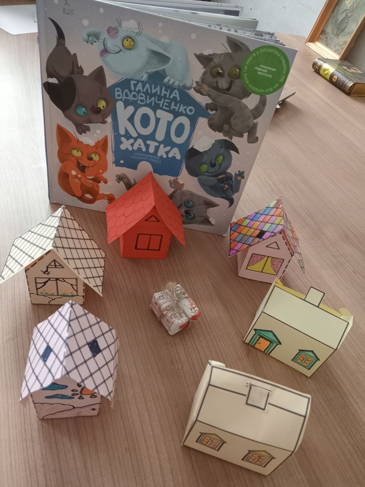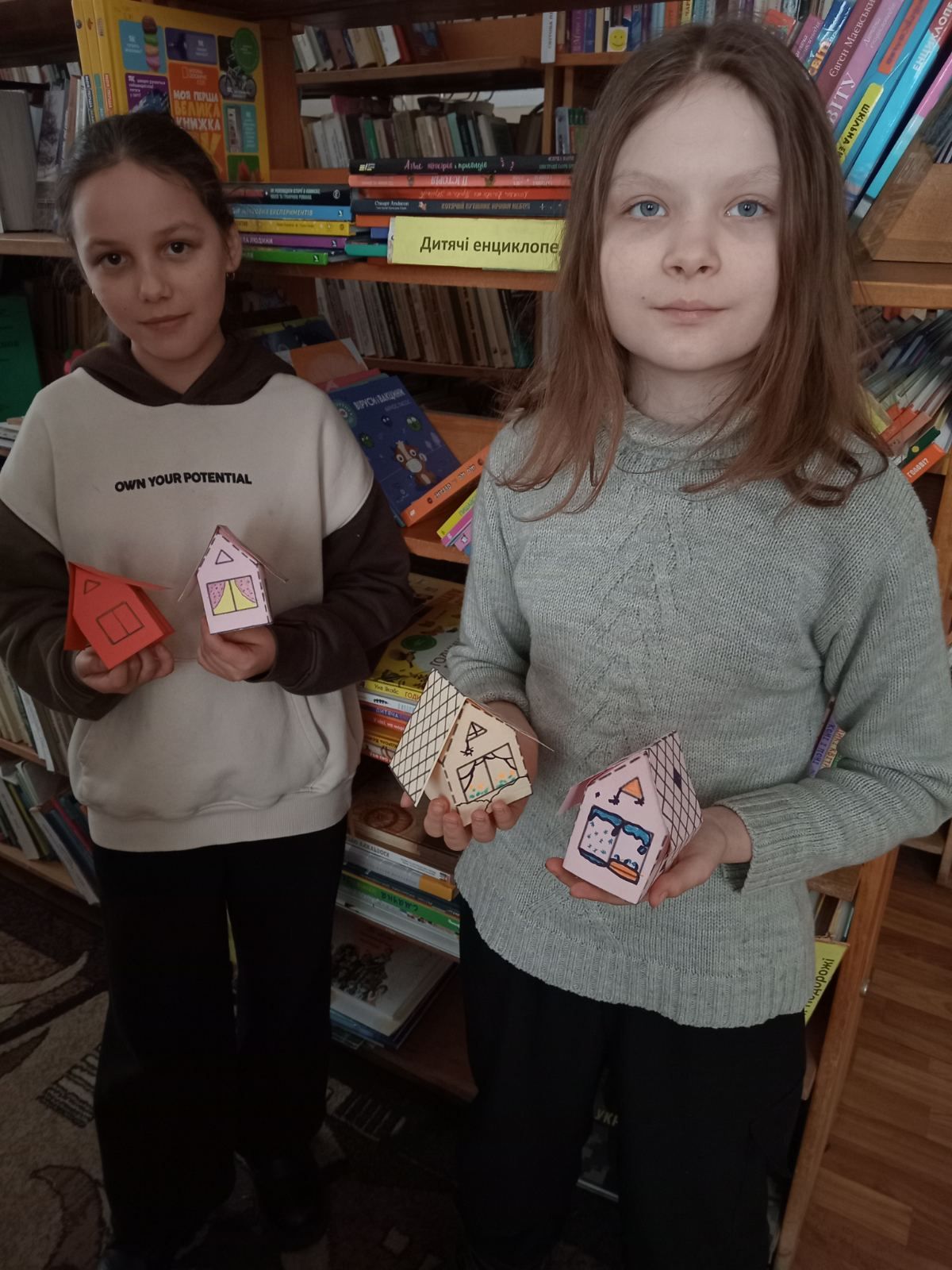 На творчому майстер-класі діти виготовляли будиночок своєї мрії, де кожна деталь була наповнена фантазією та теплом. Разом з дорослими відвідувачі книгозбірні читали книги, мріяли про світ без війни, про яскраве світло в будинках. До речі, в нашій бібліотеці ніколи не буває сумно: для активного відпочинку дітей маємо настільні та напільні ігри, м’ячі для фітнесу, конструктор. Швидко промайнув час дитячого дозвілля. Тепла атмосфера, творчість і турбота — саме за це дітлахи так люблять бібліотечні зустрічі.
