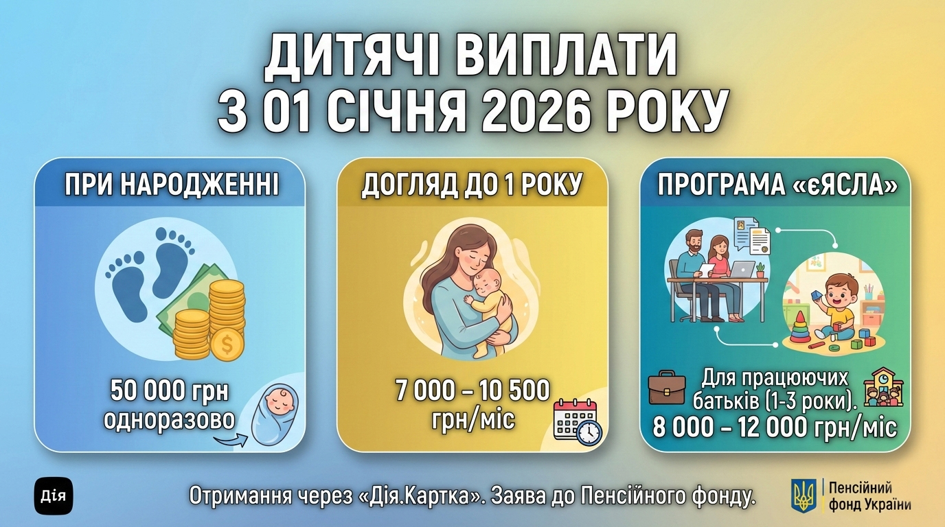 ДИТЯЧІ ВИПЛАТИ З 01 СІЧНЯ 2026 РОКУ