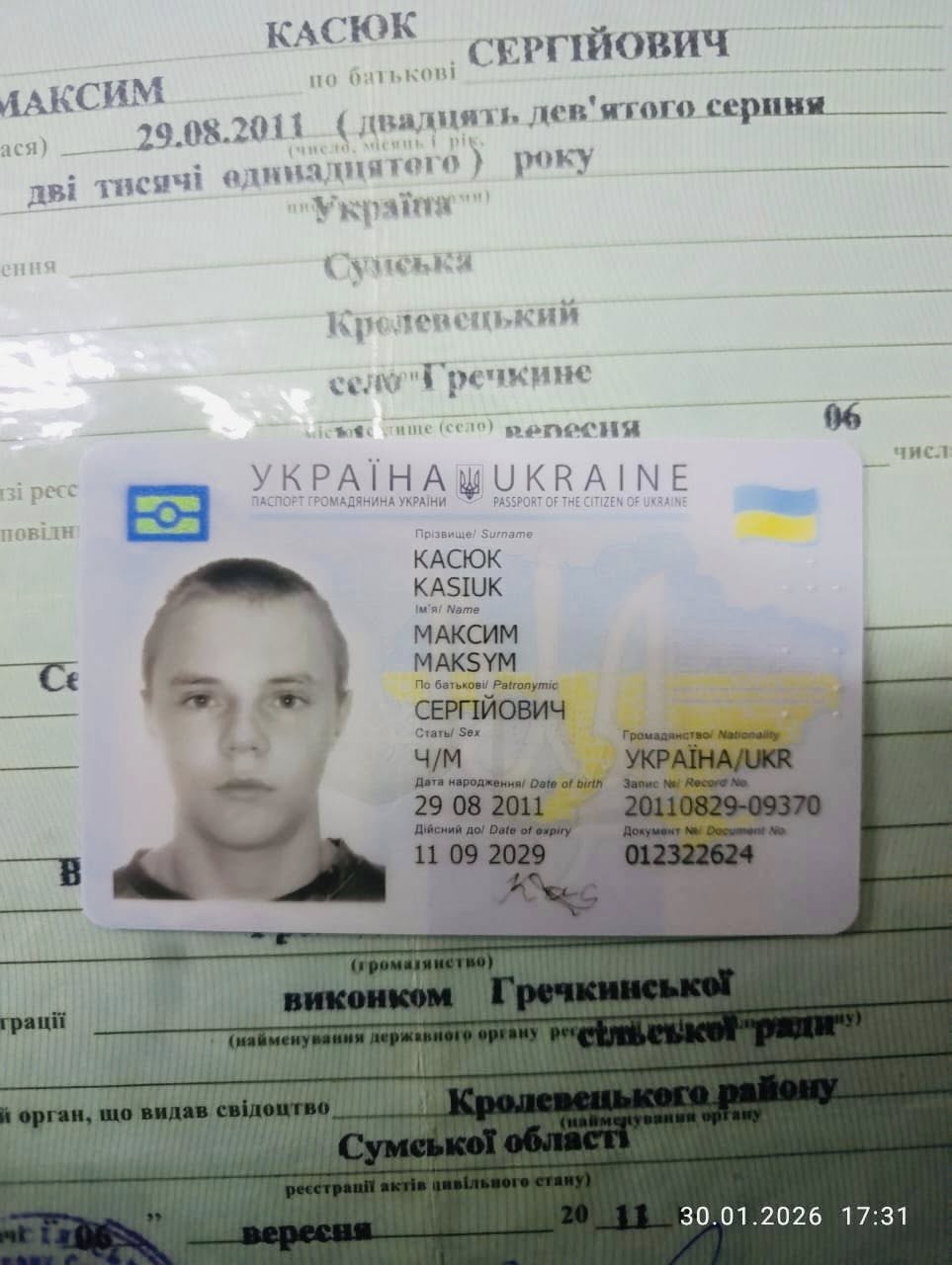 Поліція встановлює місце перебування неповнолітнього Касюка Максима Сергійовича,