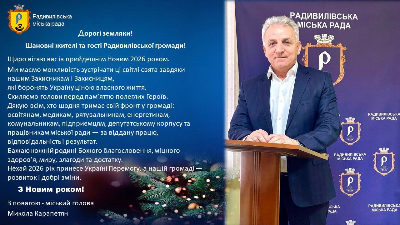 Нехай 2026 рік принесе Україні МИР і ПЕРЕМОГУ, а нашій громаді — розвиток і добрі зміни.
