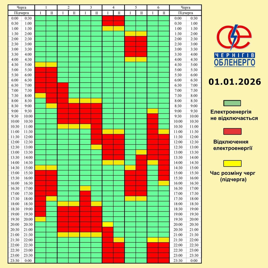 👇Прогнозовано, протягом 01 січня будуть діяти наступні графіки погодинних відключень: