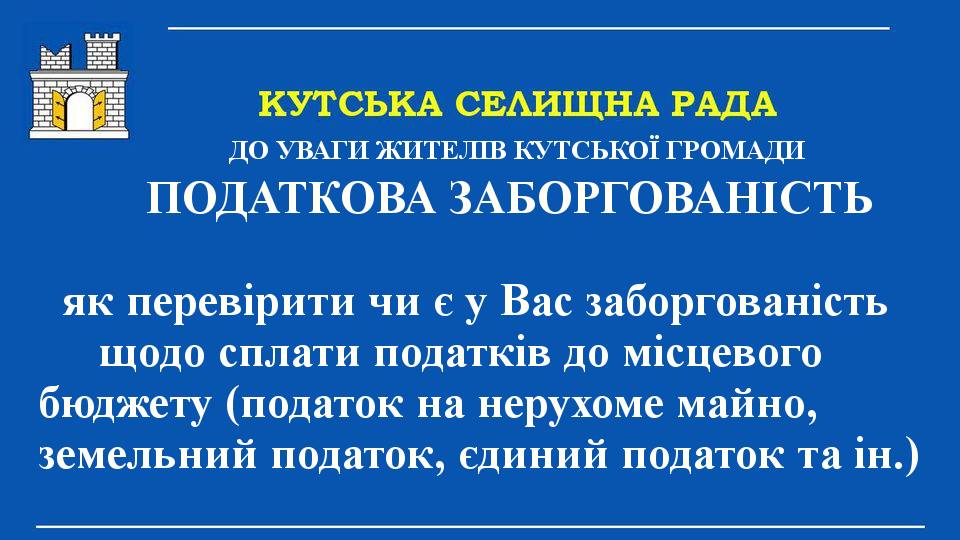 ‼️ ДО УВАГИ ЖИТЕЛІВ КУТСЬКОЇ ГРОМАДИ! ПОДАТКОВА ЗАБОРГОВАНІСТЬ