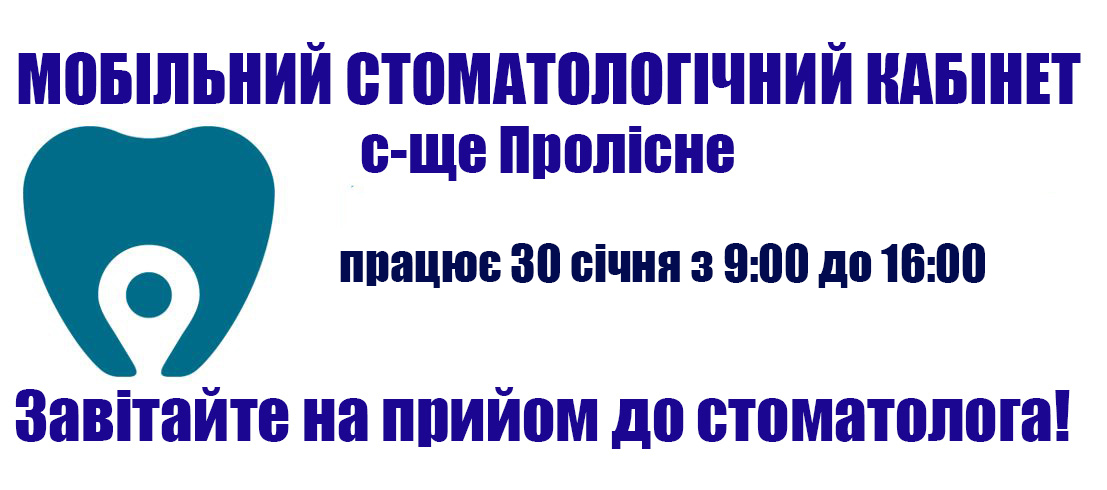 Завтра, 30 січня, у с-щі Пролісне з 9:00 ранку до 16:00 дня буде здійснювати прийом лікар-стоматолог Центру медичної допомоги та медицини катастроф.