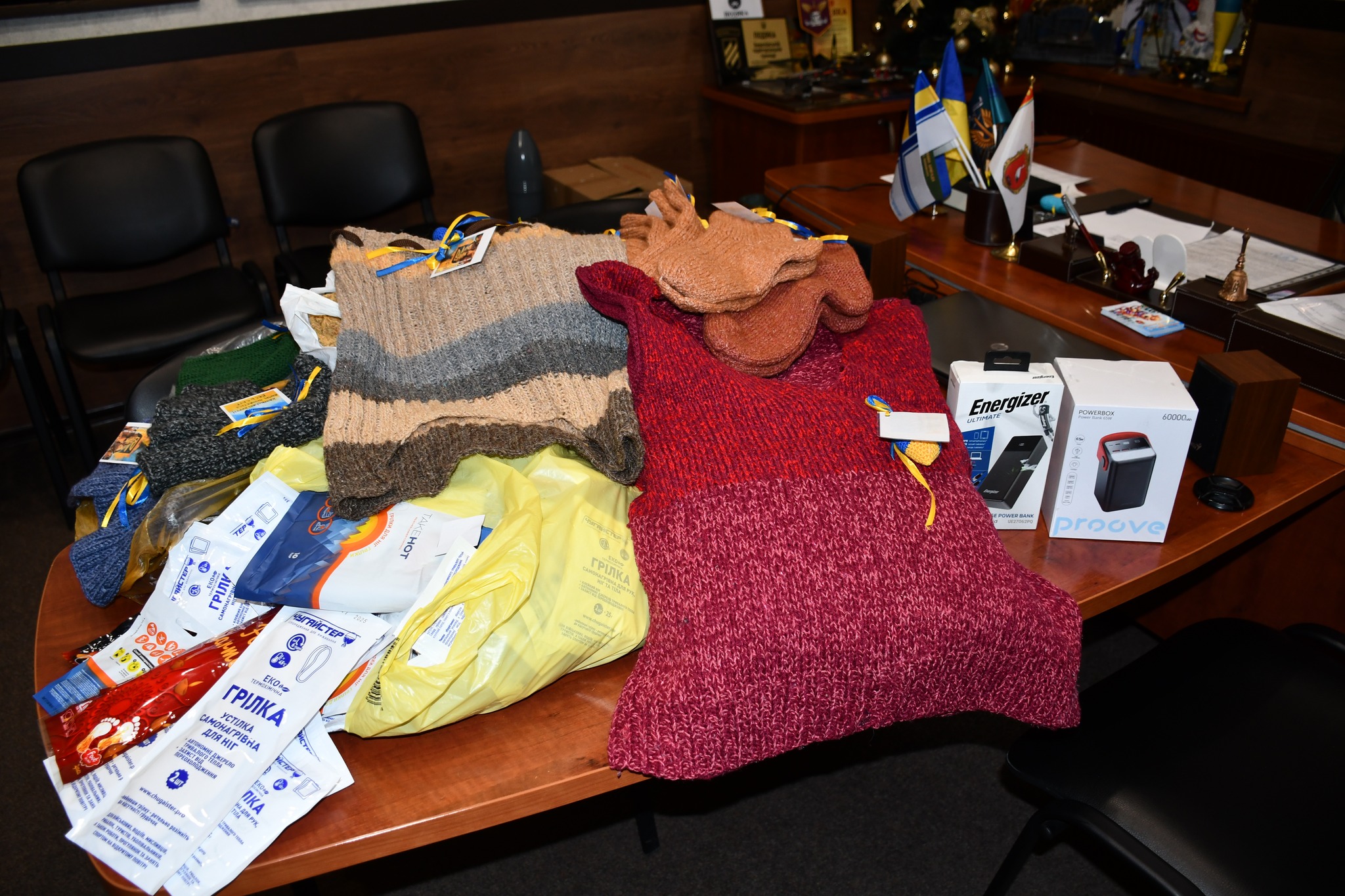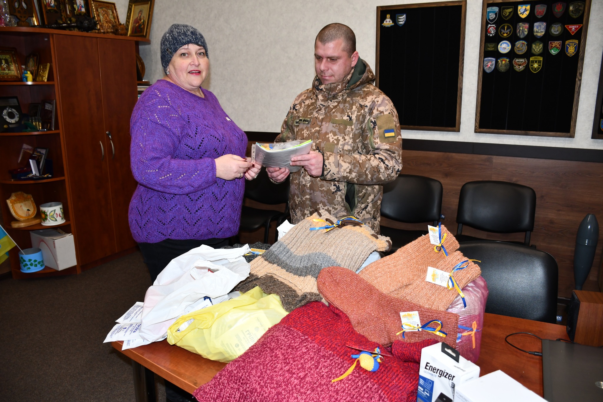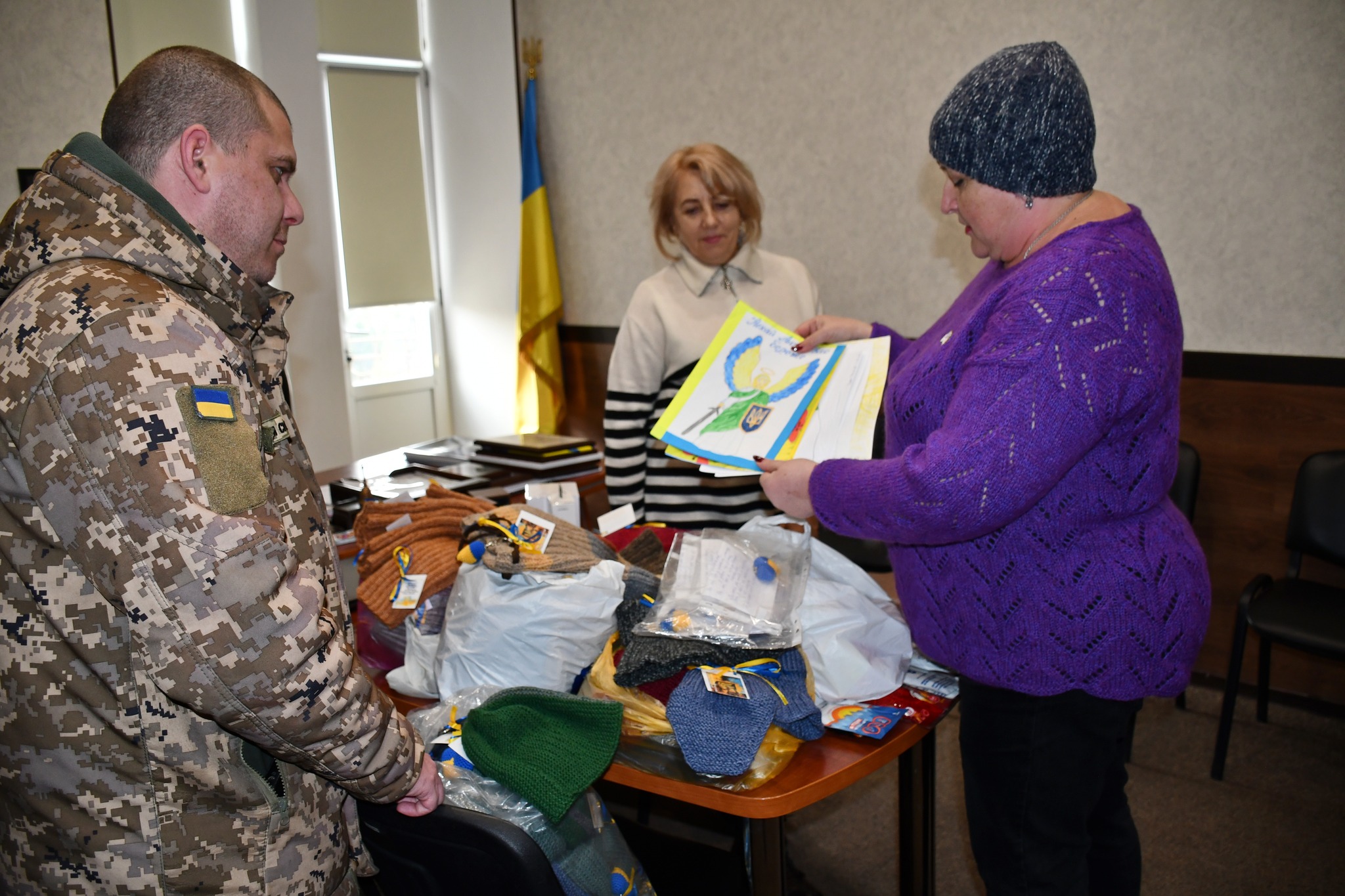 Завдяки вашим золотим рукам і великим серцям наші захисники отримали майже 60 одиниць теплих виробів: шапки, шкарпетки, рукавиці, пояси, жилетки, манішки та інші необхідні речі.
