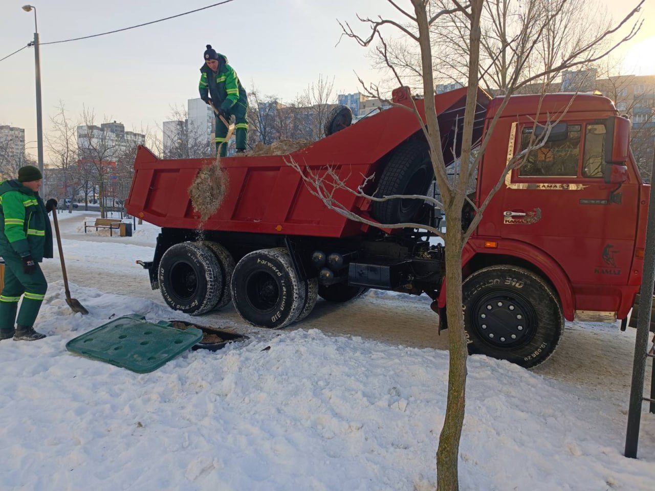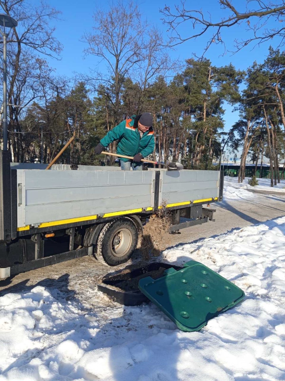 Працівники КП УЗН Деснянського району поповнили запаси піско-соляної суміші у спеціальних контейнерах у парках та скверах району. 🌿🧂