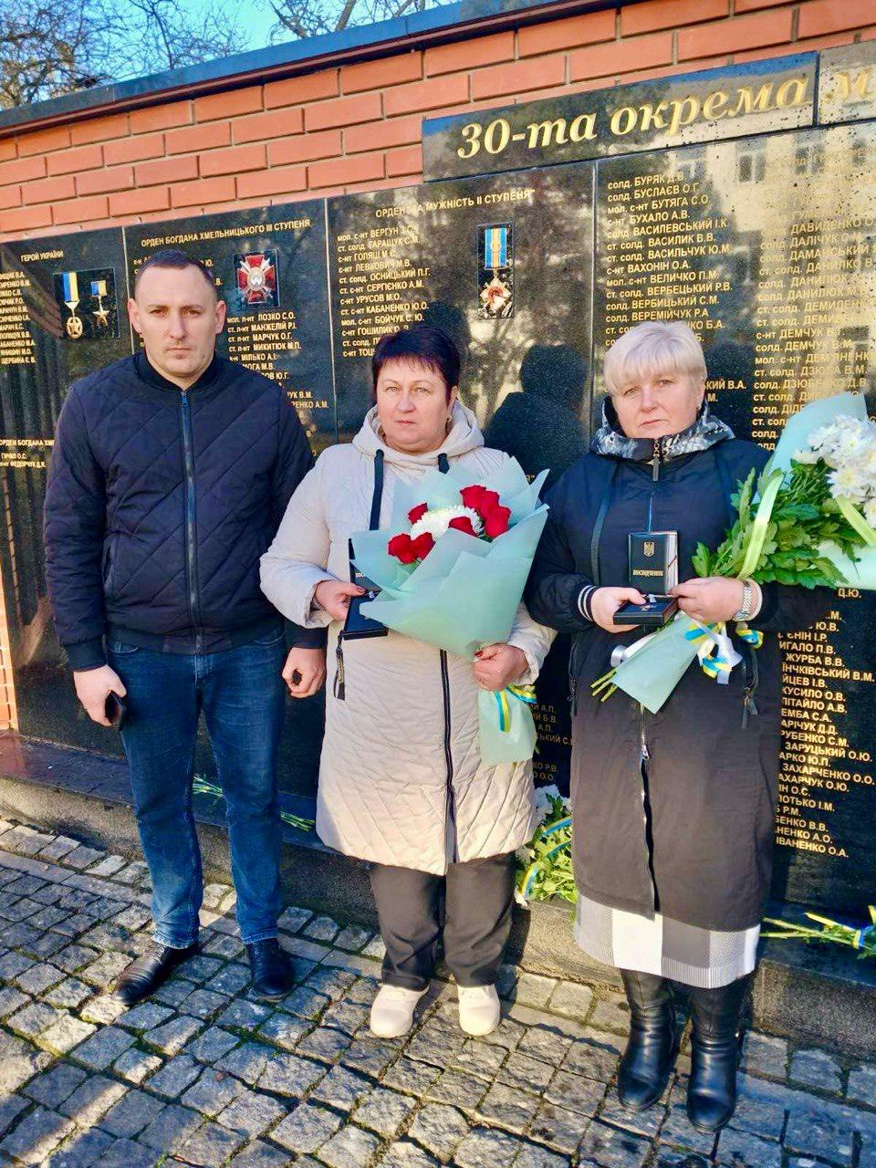Відзнаки отримали матері полеглих Захисників — Надія Полюхович, мати Дмитра Козачонка з села Курозвани, та Оксана Гарбарчук, мати Тараса Гарбарчука з Гощі. Урочисте вручення відбулося у місті Звягель за участі представників 30-ї окремої механізованої бригади.