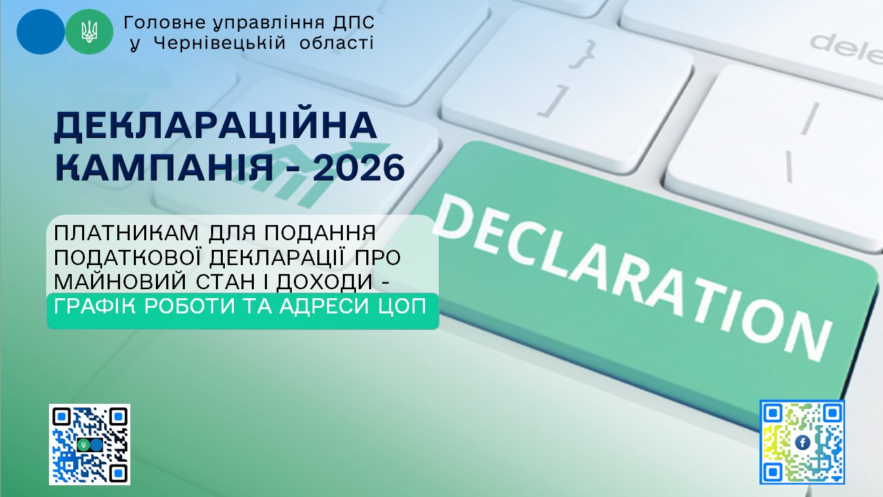 ✍Деклараційна кампанія 2026: платникам для подання податкової декларації про майновий стан і доходи – графік роботи та адреси ЦОП
