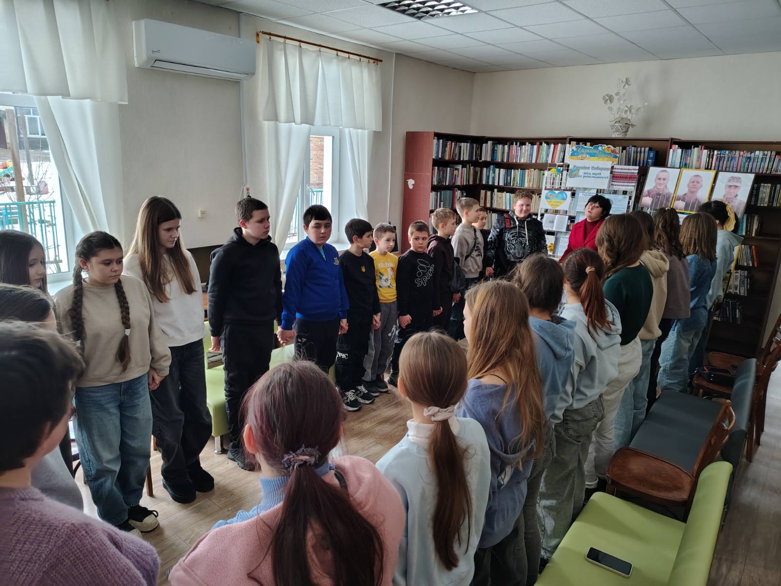 Продовженням заходів стало відвідування шестикласниками разом із заступником директора з виховної роботи Людмилою Діковою та педагогом-організатором Наталією Плискою комунального закладу «Публічна бібліотека», де директорка книгозбірні Лілія Василькова провела годину єднання «Ми єдині — в цьому сила». Захід розпочався спільним виконанням пісні «Ой, у лузі червона калина» — символу боротьби за волю, що об’єднує покоління та єднає українців у прагненні до свободи. У теплій і щирій атмосфері діти зробили перші усвідомлені висновки про важливість збереження єдності, честі та гідності України, а також перевірили свої знання, взявши участь у патріотичній вікторині з 30 запитань.