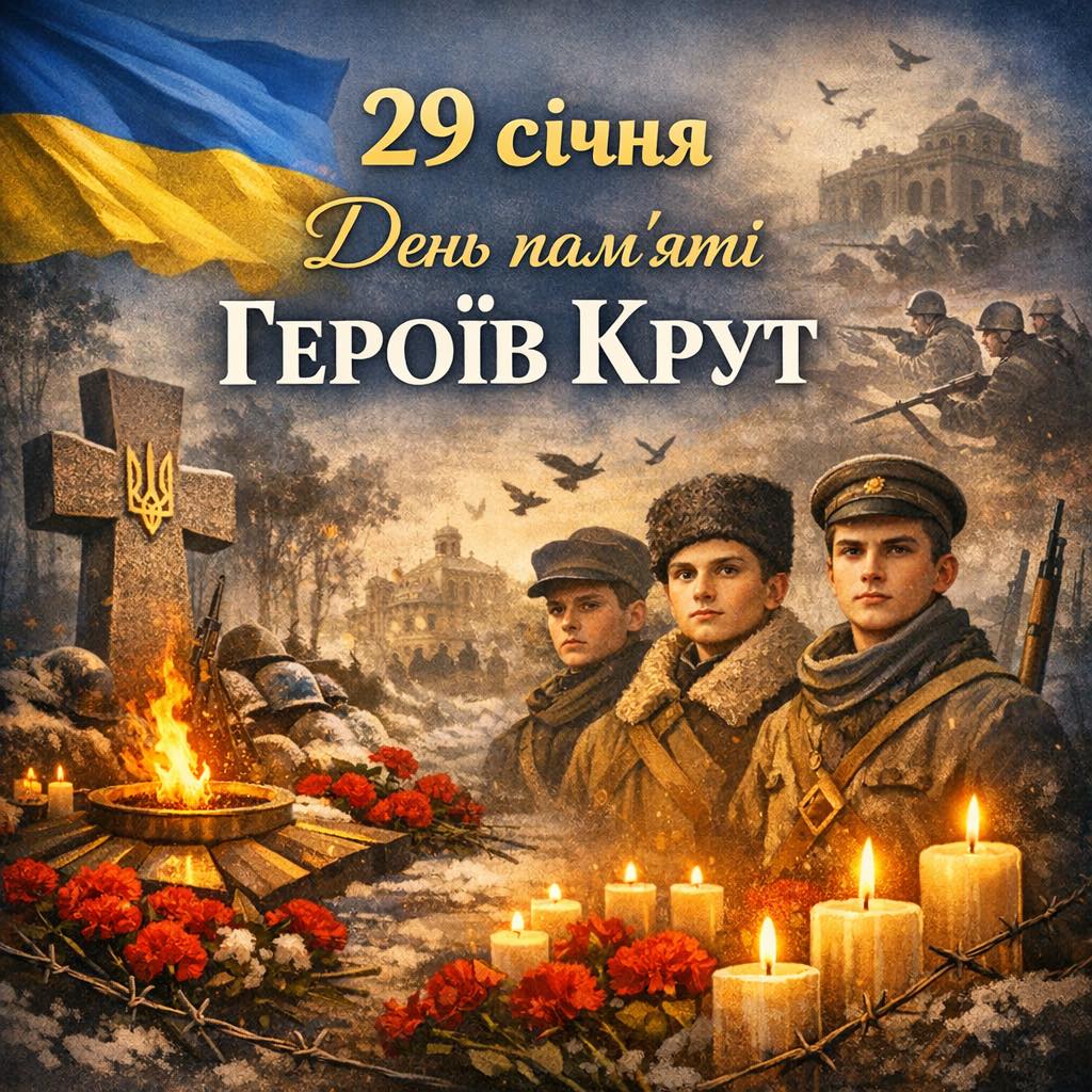 Сьогодні ми з глибокою шаною та скорботою вшановуємо світлу пам’ять Героїв Крут — молодих синів України, які у січні 1918 року стали живим щитом на шляху ворога, захищаючи право нашого народу на власну державу.