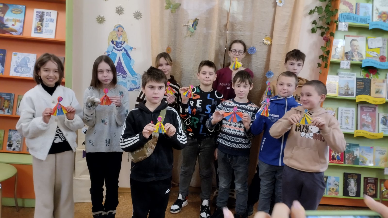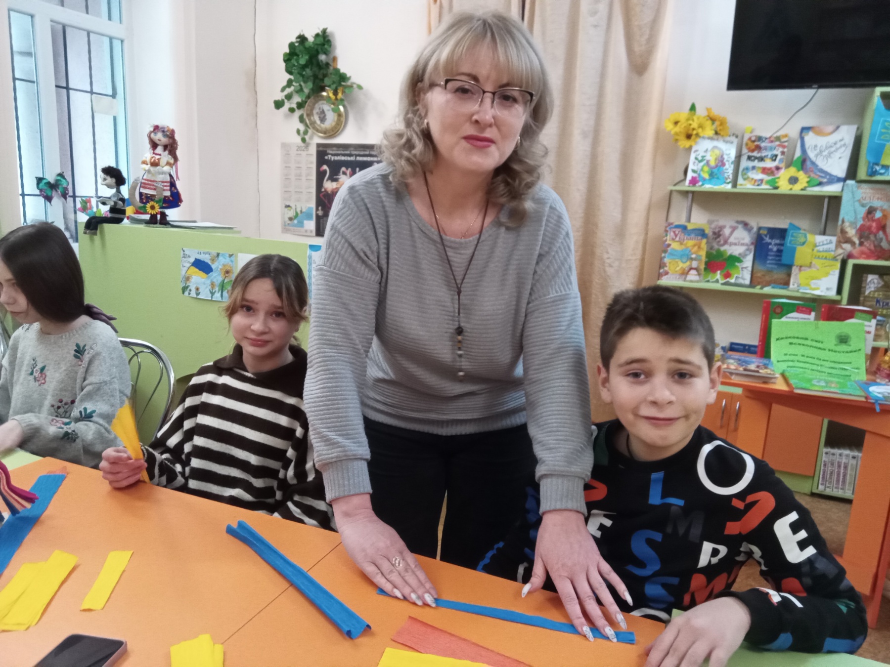 Фахівці відділу обслуговування дітей та юнацтва Публічної бібліотеки провели майстер-клас для учнів Гімназії №5 – «Лялька-мотанка – Захиснику України». Під час заняття виготовляли мотанки у вигляді Берегині з кольорового гофропаперу (синьо-жовто-помаранчевого кольорів).