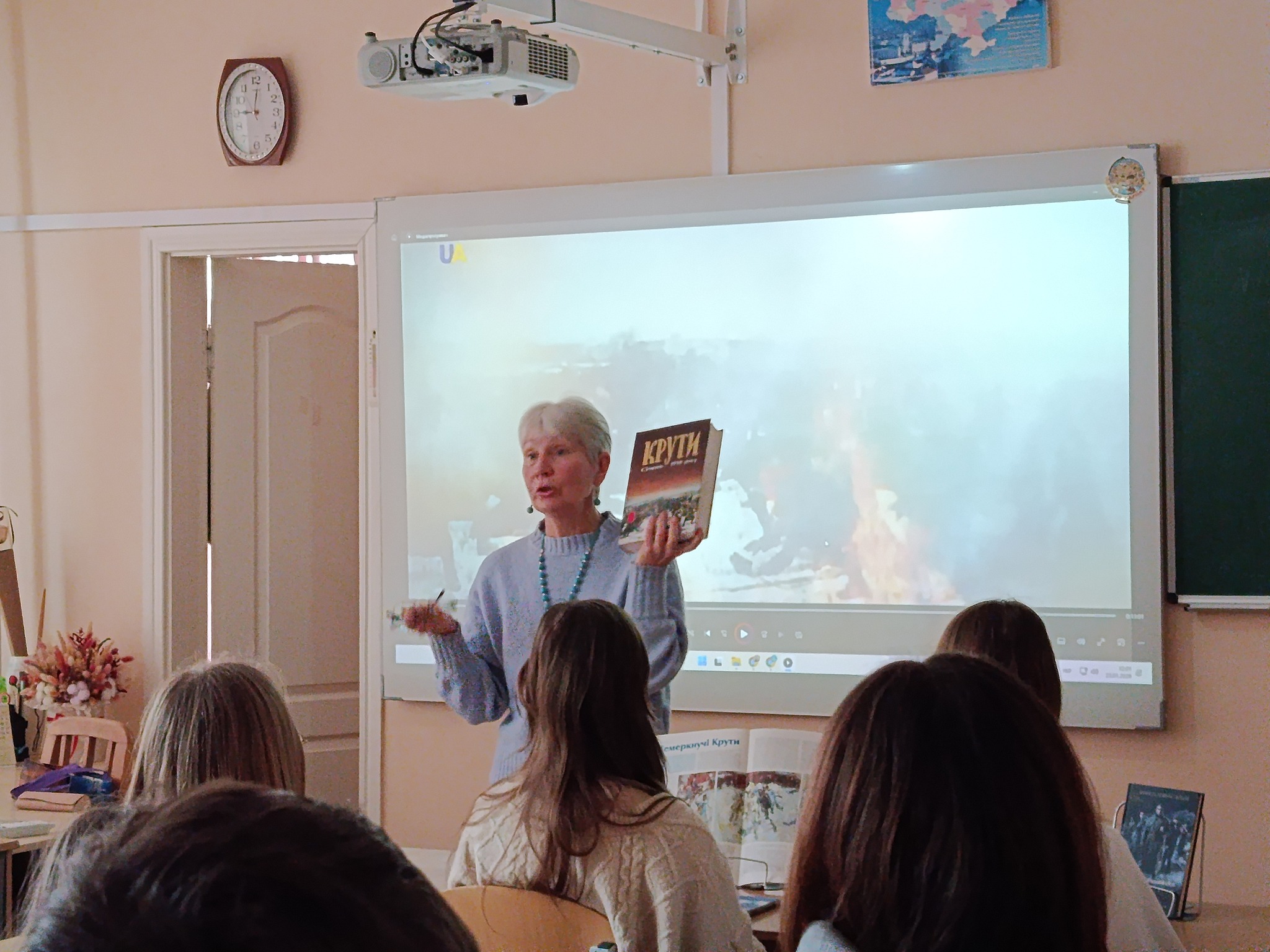 З метою виховання поваги до історичного минулого українського народу бібліотекарі бібліотеки-філії ім. Л. Українки разом з старшими класами Ліцею «Лідер» вшанували пам’ять на історико-патріотичній годині «Немеркнучі Крути».