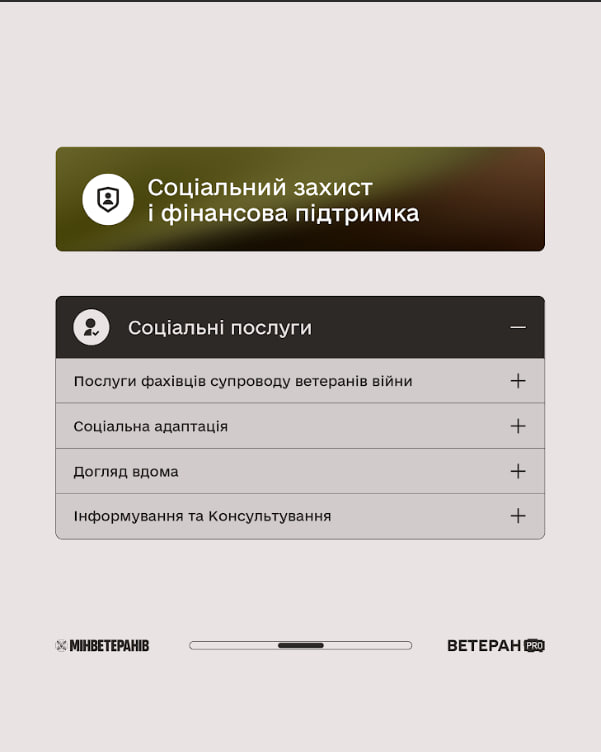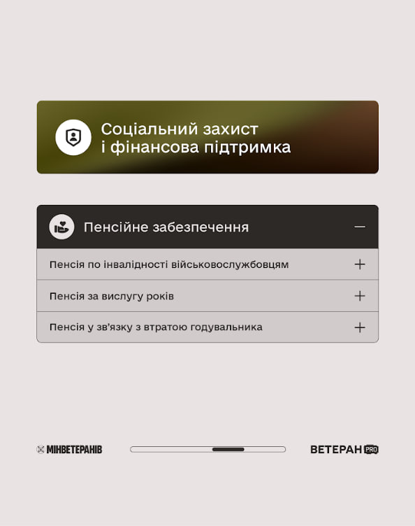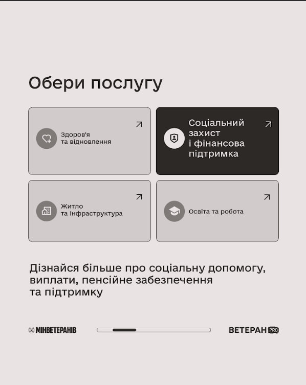 💼 На платформі Ветеран Pro зібрана перевірена інформація про державні сервіси: лікування й реабілітацію, фінансову підтримку, пільги, навчання, перекваліфікацію, можливості для роботи чи власної справи, а також про більше послуг.