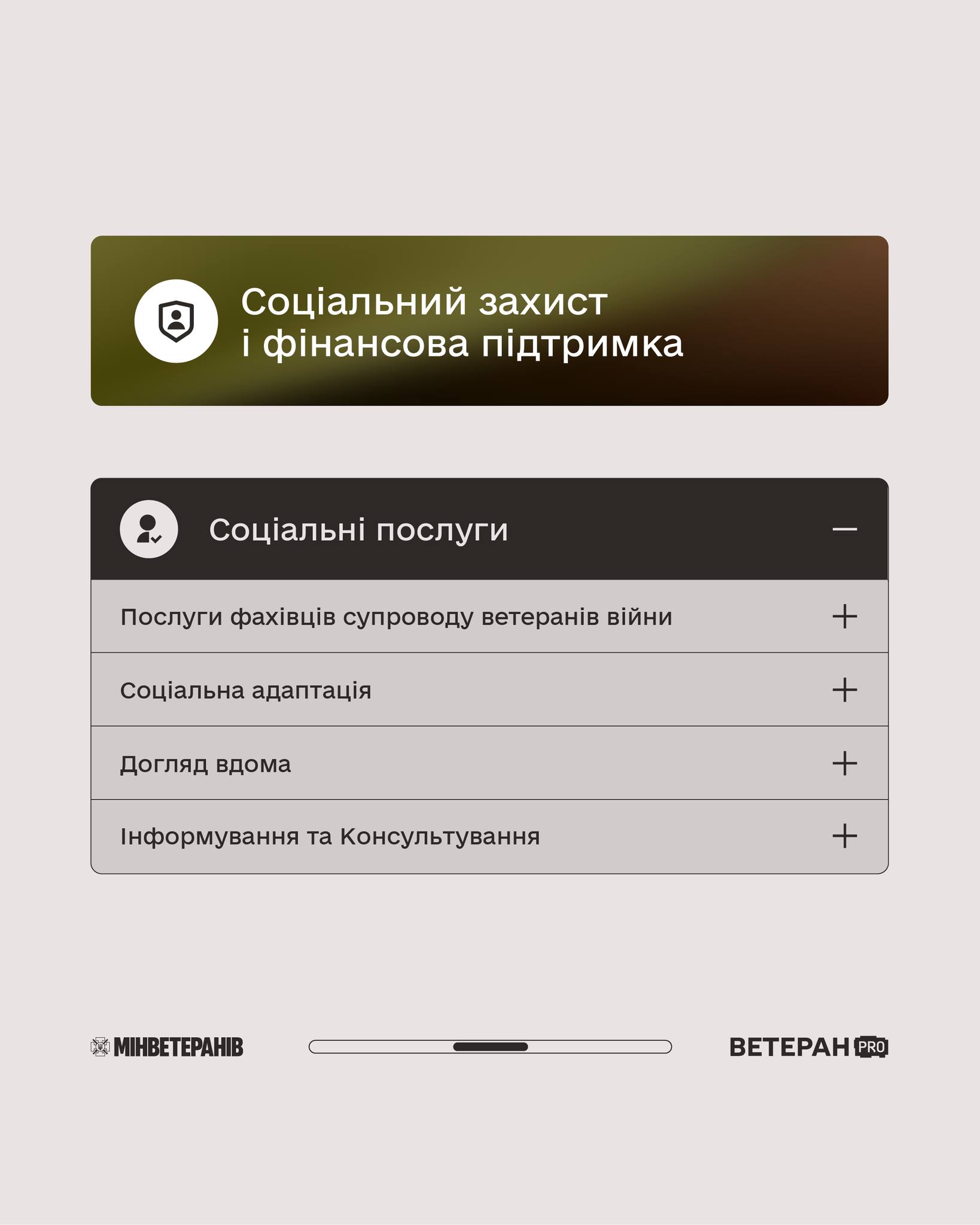 Державні послуги щодо соціального захисту та фінансової підтримки для ветеранів та ветеранок – 👇