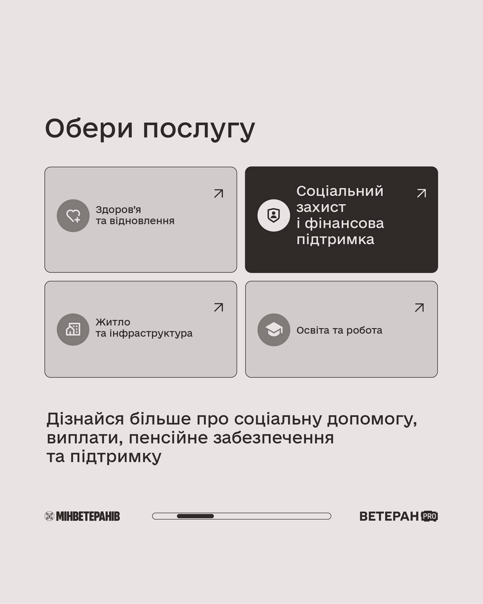 Державні послуги щодо соціального захисту та фінансової підтримки для ветеранів та ветеранок – 👇