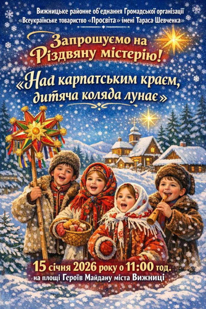 15 січня о 11:00 год у місті Вижниця на площі Героїв Майдану відбудеться дитяча коляда (розколяда)