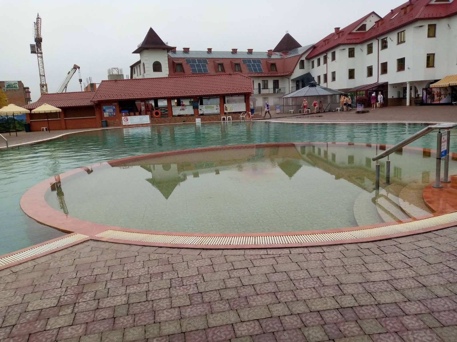 Побалували себе і в термальних басейнах комплексу (температура води тримається 25-40 градусів), яких було аж 8. Весь секрет в тому, що вода, якою наповнюються басейни комплексу, йде прямо зі свердловиниглибиною 1200 м., і не піддається технічній та хімічній обробці, і завдяки цьому цілющу силу води можна відчути на собі. Гарячі води надходять із магматичних інтрузій у районах активної вулканічної місцевості, на які багатий Берегівський край.