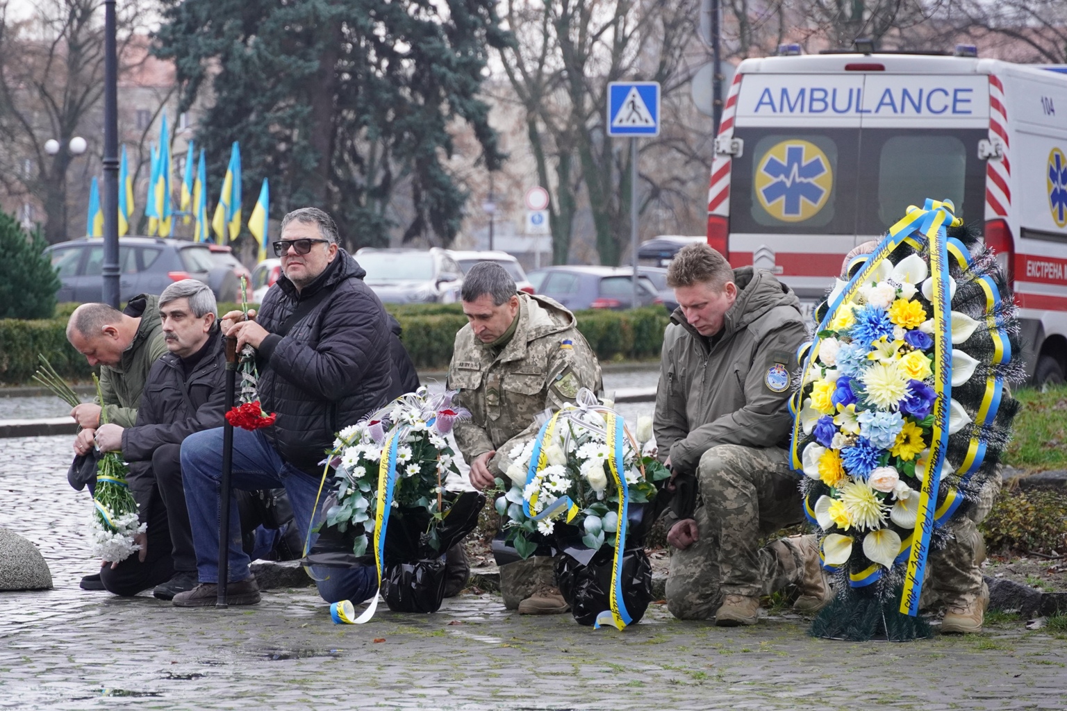 Чин похорону відбувся на площі Народній. Віддати шану полеглому прийшли рідні, друзі, військові, ужгородці, в.о. міського голови, заступник міського голови Михайло Маргіта.