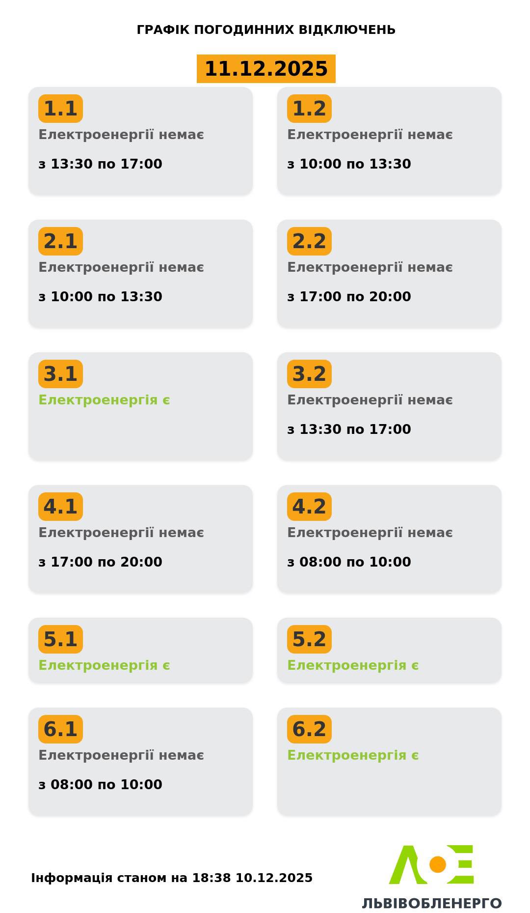 Доброго вечора Навіть коли навколо темрява, наші серця залишаються маяками надії. Кожен із нас – іскра, що освітлює шлях до перемоги України. Зберігаємо спокій. Віримо в ЗСУ. Нехай ніч буде тихою, а ранок – мирним і світлим.🔌💡 ГПВ на 11 грудня⤵️