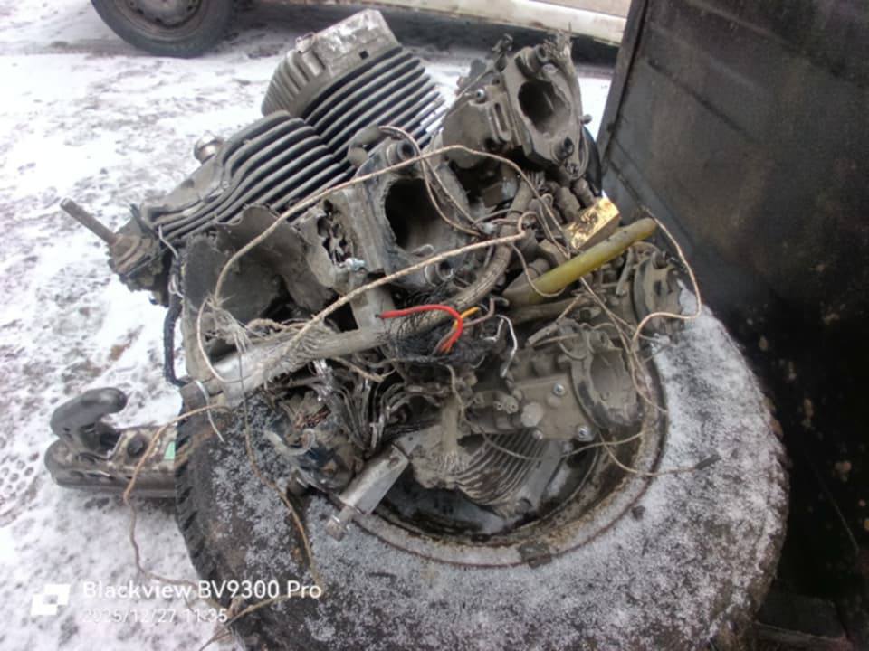 Любомир Онисько з останньої волонтерської поїздки привіз трофей – двигун від моск@лького дрона, збитий над Олександрівкою бригадою “Рубіж”.