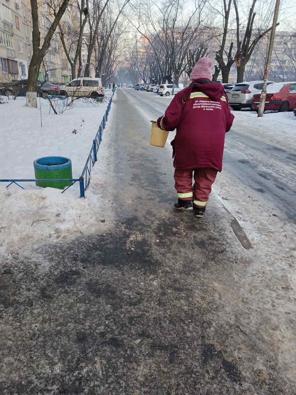 🚜 Дороги й тротуари обробляють протиожеледними засобами та розчищають 21 одиниця спецтехніки КП ШЕУ Дарницького району.