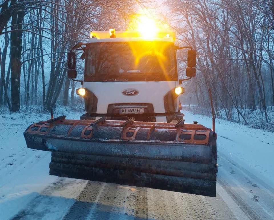 🚜 Дороги на Київщині обробляють протиожеледними сумішами та чистять від снігу 176 одиниць техніки