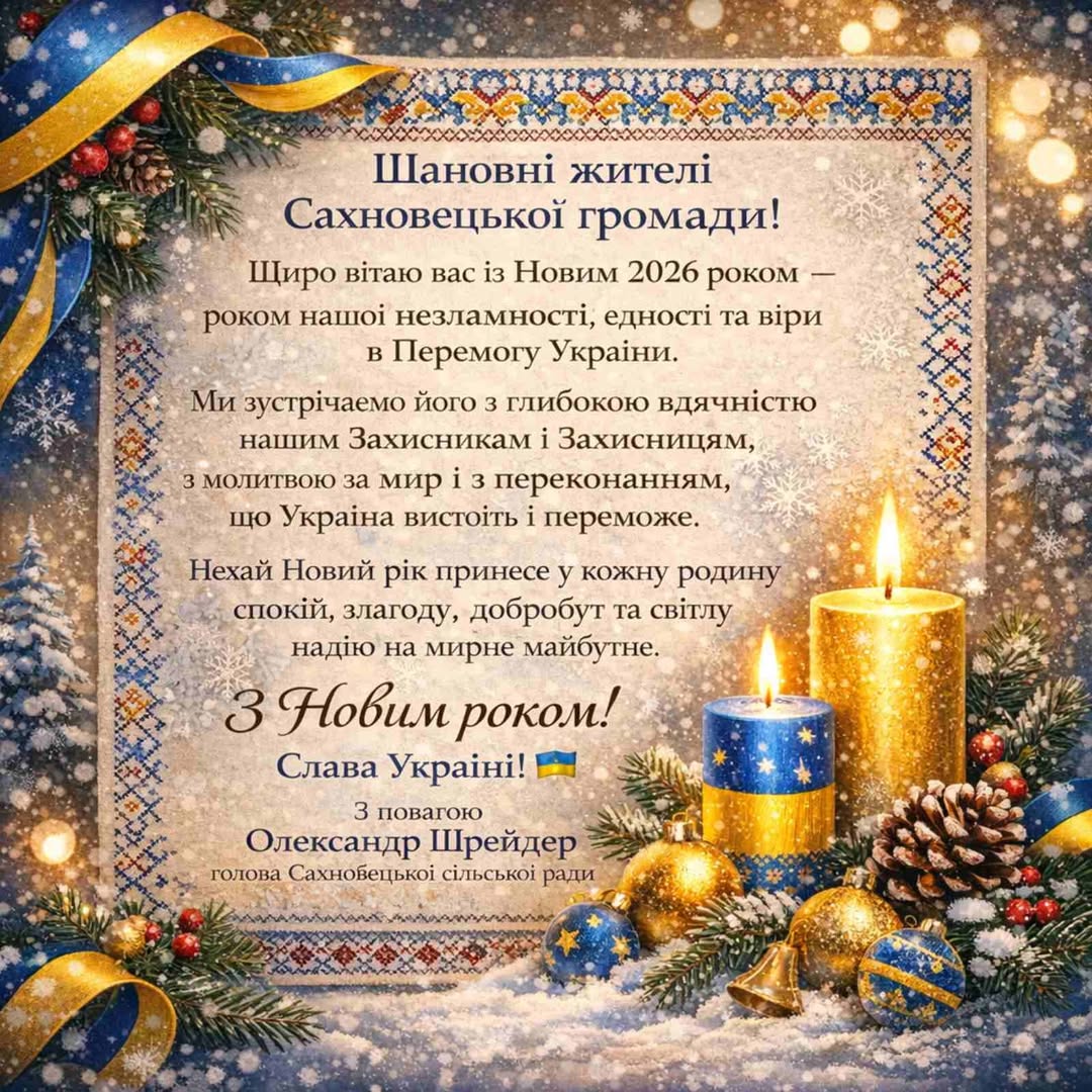 Нехай він стане роком миру, добра і світлих змін. Нехай у ваших домівках панують тепло, любов і взаєморозуміння, а серця наповнюються вірою та надією.