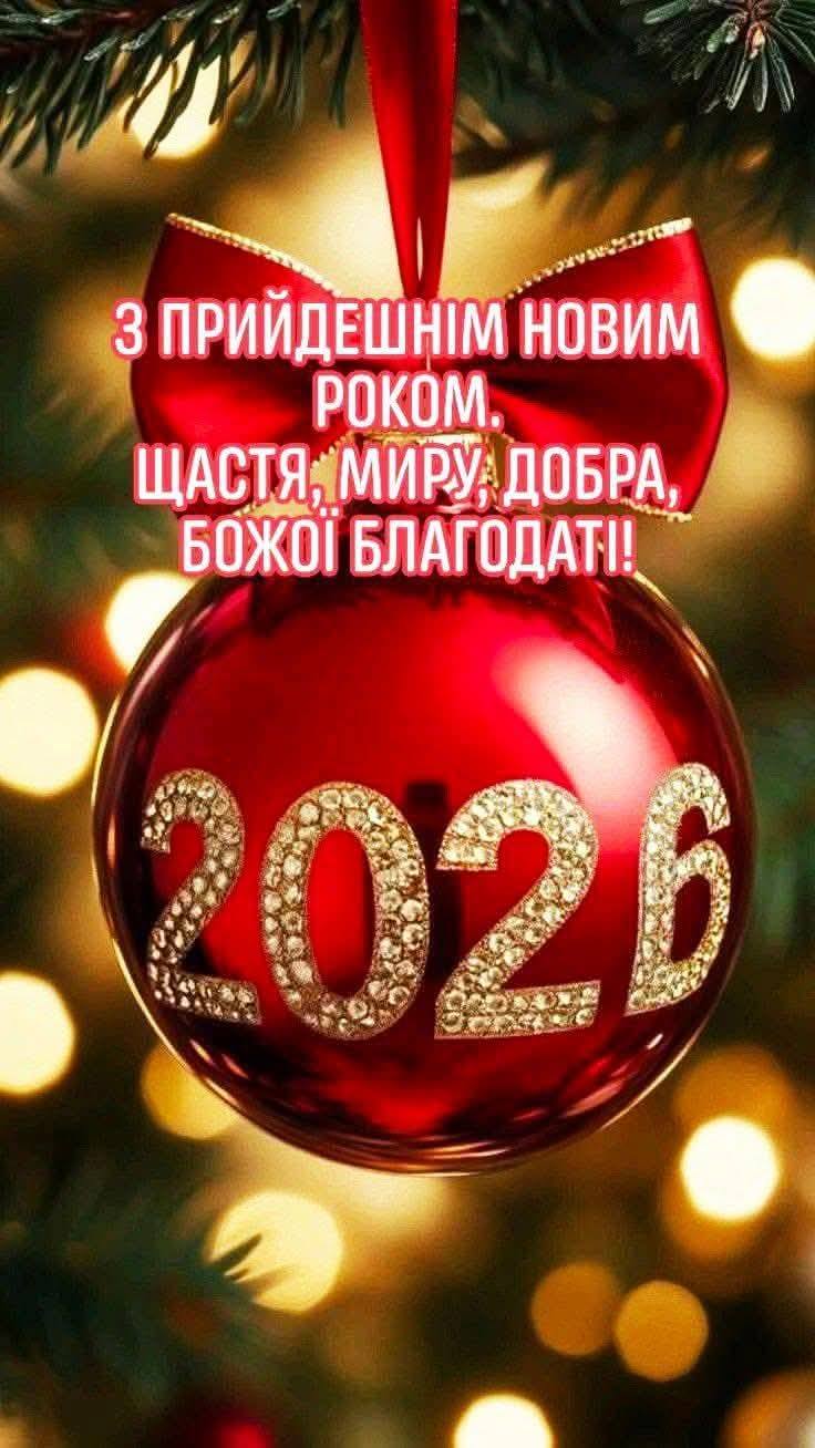 Хай Новий рік принесе довгоочікуваний мир, злагоду й стабільність, нові можливості, добрі новини та успішні проєкти 🌟📈. Нехай у кожній родині панують тепло, здоров’я, добробут і впевненість у завтрашньому дні 🏠❤️, а в нашій громаді — єдність, взаємна повага та віра в спільне майбутнє 🤗🌍.