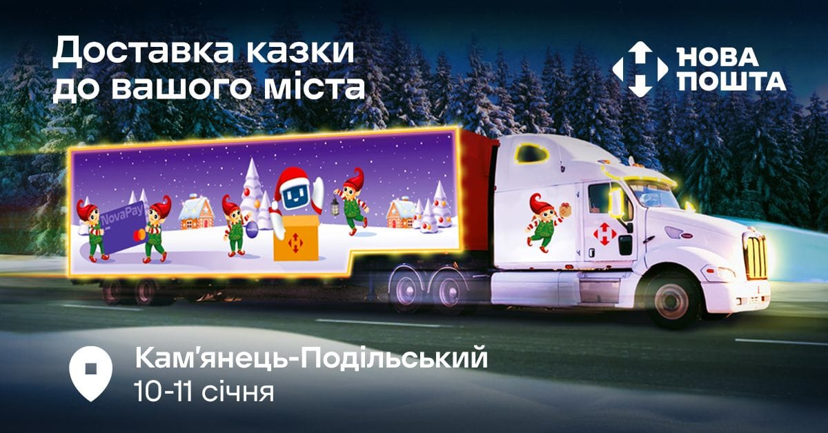 З 10 по 11 січня 2026 року чарівний трак Нової пошти відкриє у Кам’янці-Подільському святкову локацію «Казкове відділення». Кожні 20 хв для гостей буде проводитися інтерактивна міні-вистава — багато тепла, світла й справжньої зимової магії для дітей.