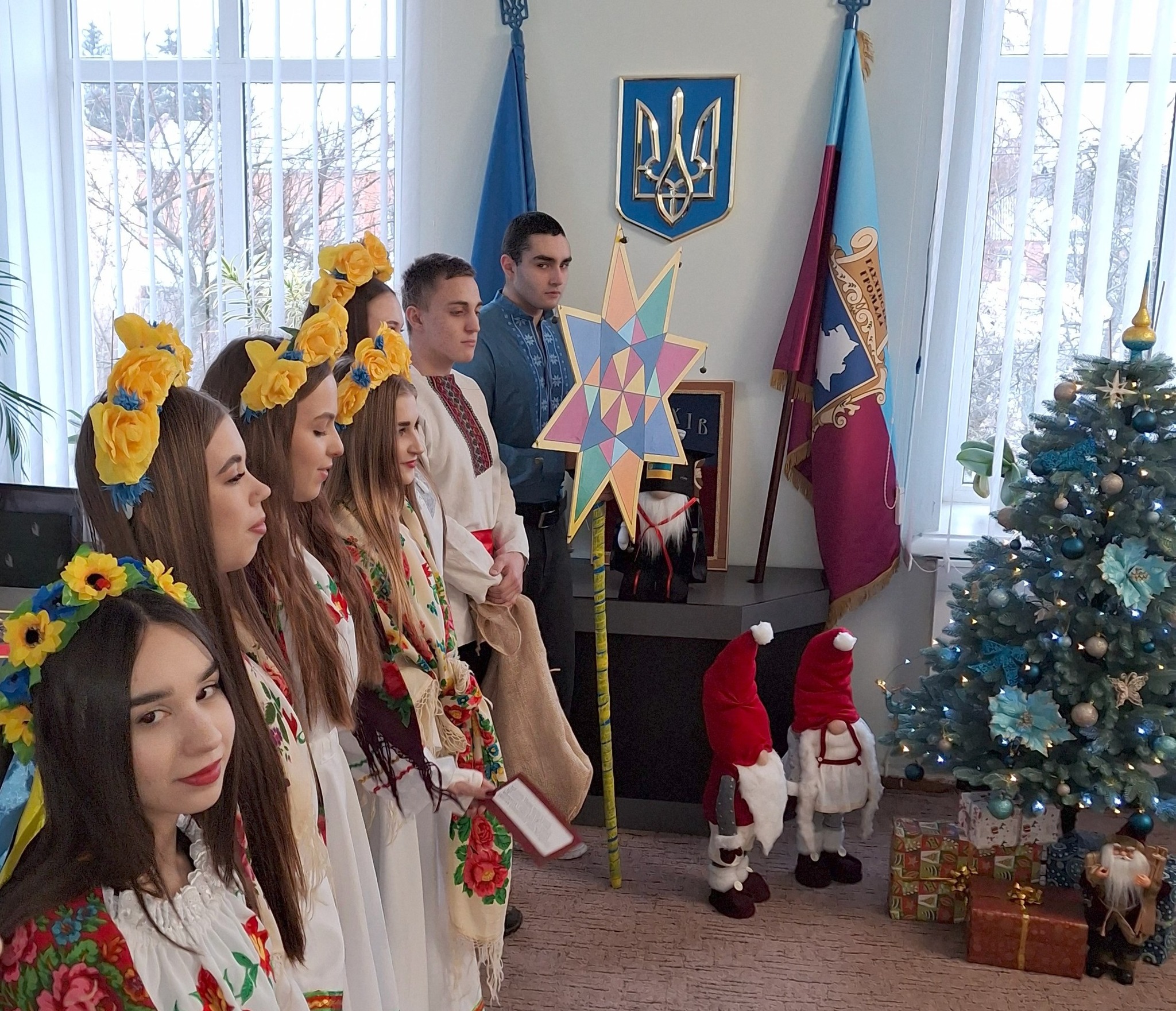 У святкові різдвяні дні до Глухівської міської ради з щирими вітаннями завітали колядники ЗОШ №3 та Професійно-педагогічного фахового коледжу ГНПУ імені Олександра Довженка (освітньо-розвивальний простір «Веселкові барви»).