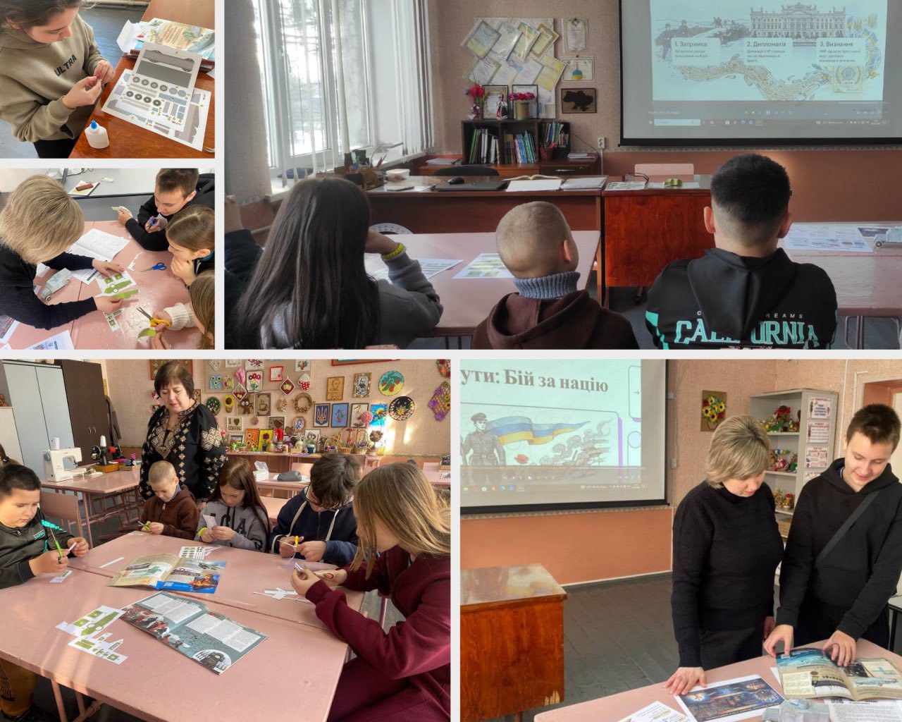 Практична частина заходу була присвячена новому просвітницькому проєкту «Броня та крила трьох стихій» від Українського інституту національної пам’яті ✈️🚤. Діти створювали паперові моделі військової техніки періоду Української революції 1917–1921 років — літаки ✈️, броньовики та кораблі 🚤.