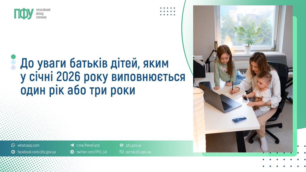 Право на зазначені види допомоги мають батьки дітей, яким станом на 1 січня 2026 року не виповнилося один рік або три роки відповідно. Допомога по догляду за дитиною до досягнення нею одного року призначається включно до місяця, в якому дитині виповнюється один рік, за умови звернення із заявою до органів Пенсійного фонду України не пізніше місяця, що настає після досягнення дитиною однорічного віку.