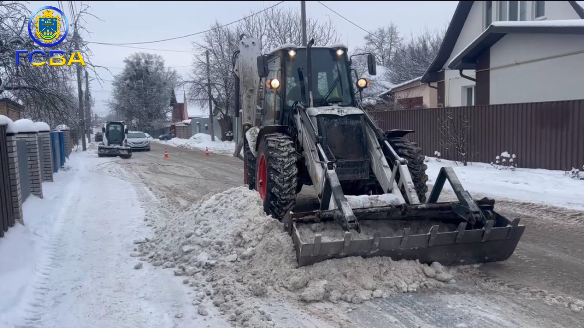 КП «Благозеленбуд» здійснює розчищення та обробку доріг по вулиці Ярова у Гостомелі.
