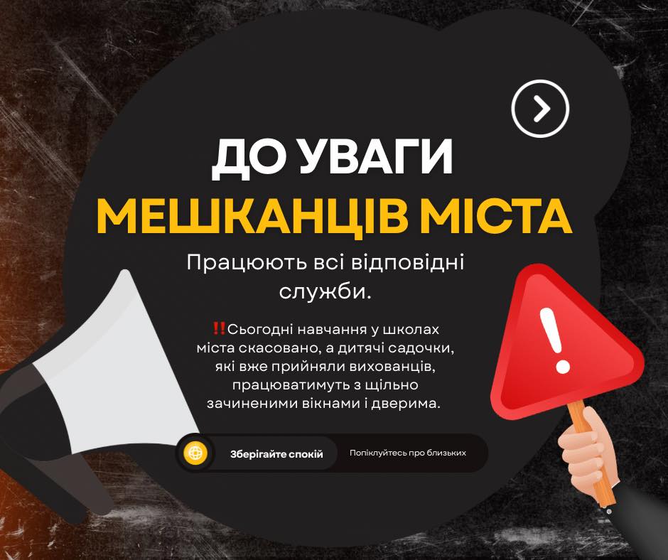 ‼️Сьогодні навчання у школах скасовано, а дитячі садочки, які вже прийняли вихованців, працюватимуть з щільно зачиненими вікнами і дверима.
