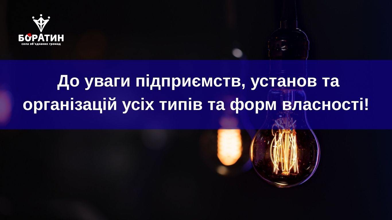 Окремо закликаємо підприємців Боратинської громади обмежити використання освітлення зовнішньої реклами, рекламних вивісок та підсвіток.