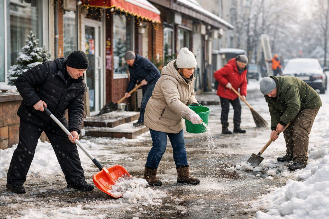 ✅ забезпечити наявність інвентарю та протиожеледних засобів;