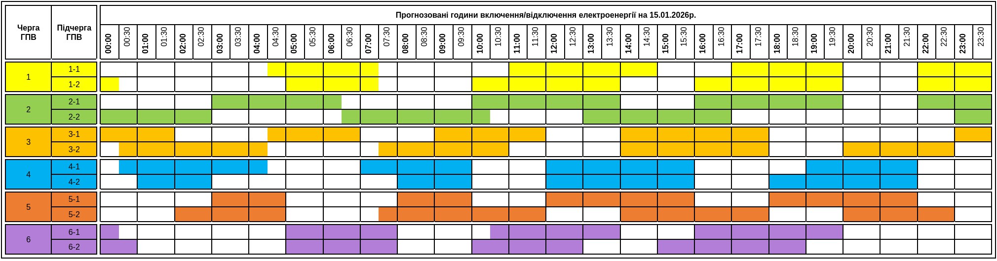 До уваги споживачів графік погодинних включень/відключень електроенергії на четвер, 15.01.2026
