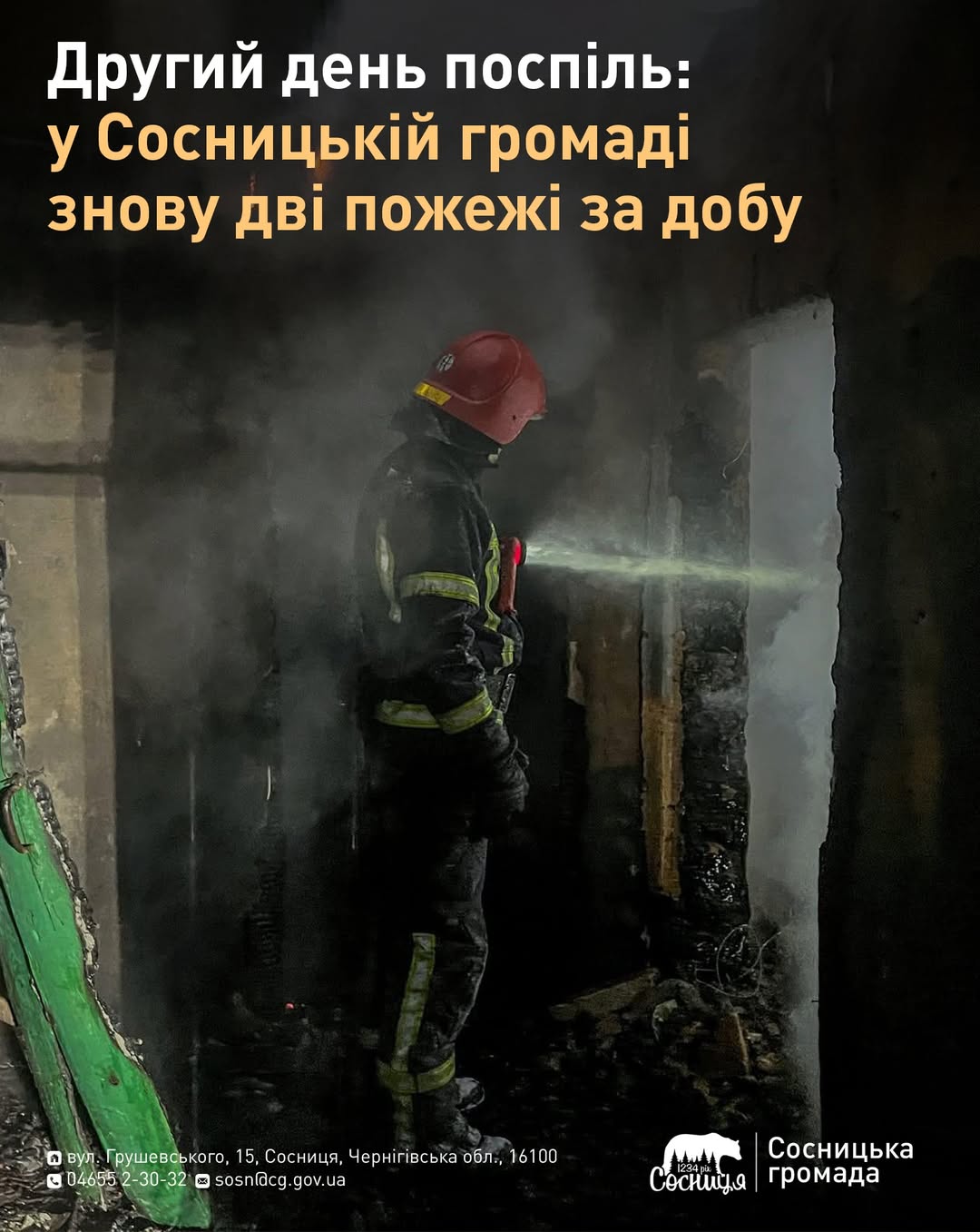 Другий день поспіль: у Сосницькій громаді знову дві пожежі за добу Вчора у Сос…