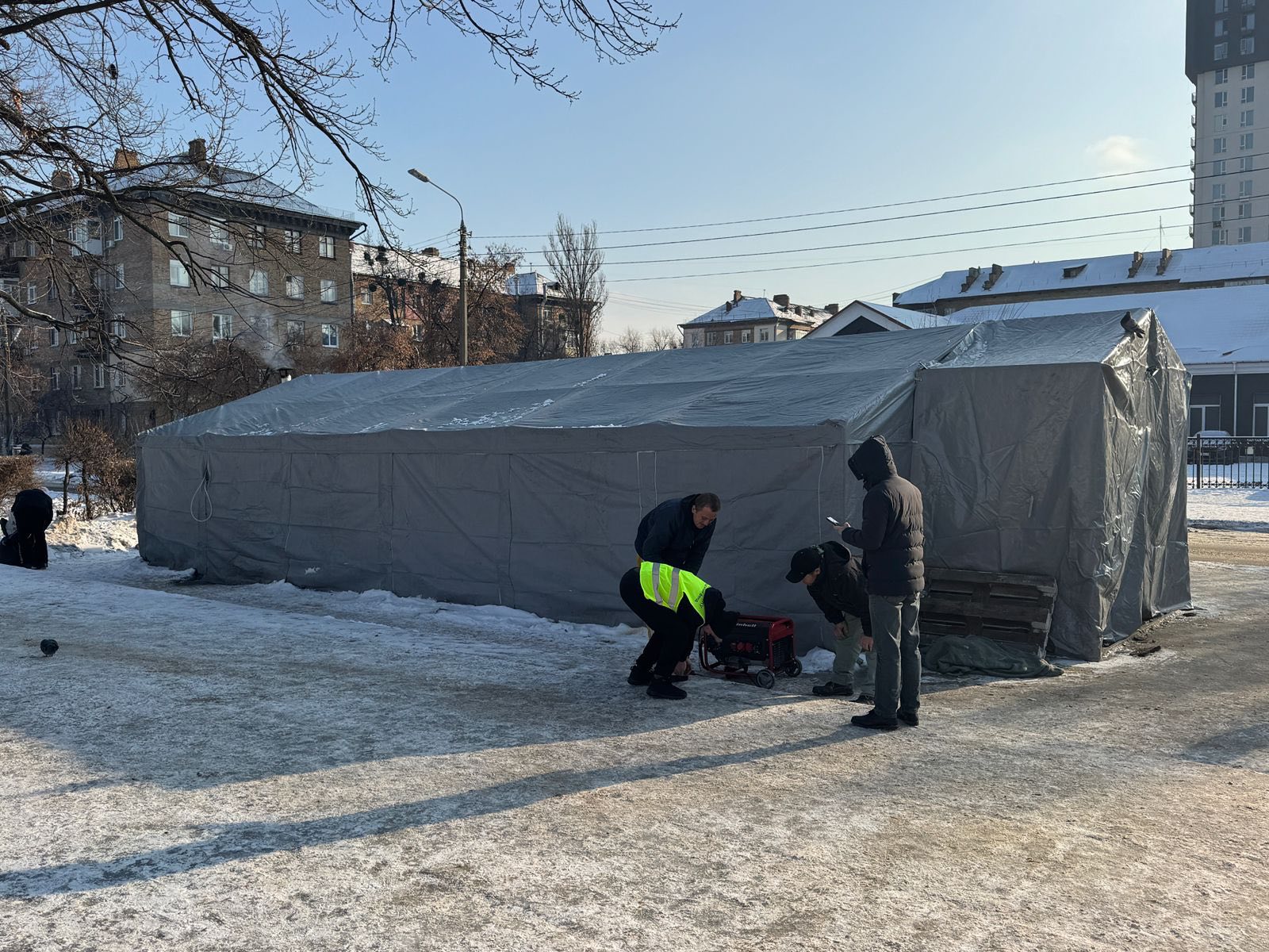 Пункт обігріву продовжує працювати. В цьому пункті обігріву не було передбачено генератор для можливості зарядити телефони та інші ґаджети. Ми змогли знайти додатковий ресурс для доукомплектування локації в парку «Привокзальний».
