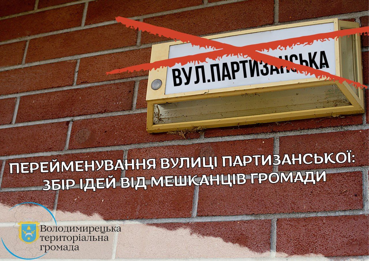 Друзі, у громаді розпочинається процес перейменування вулиці Партизанської у населених пунктах Володимирець, Радижеве, Хиночі та Степангород.