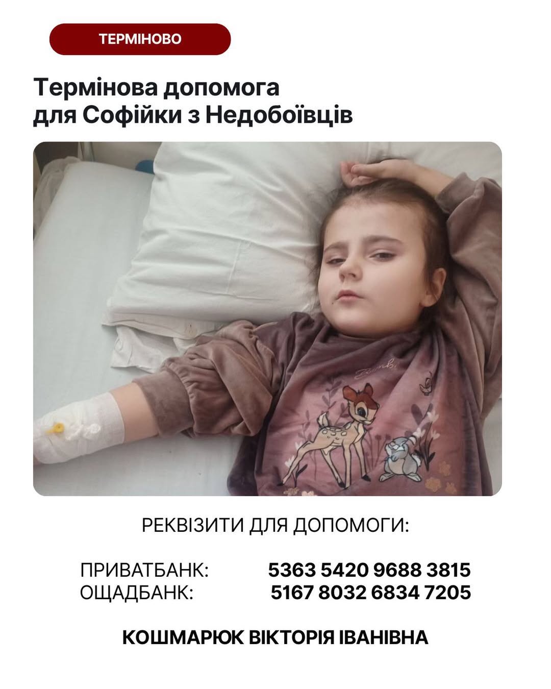🙏🏻 Тому ми разом із мамою Софійки звертаємося до всіх небайдужих з проханням про допомогу.