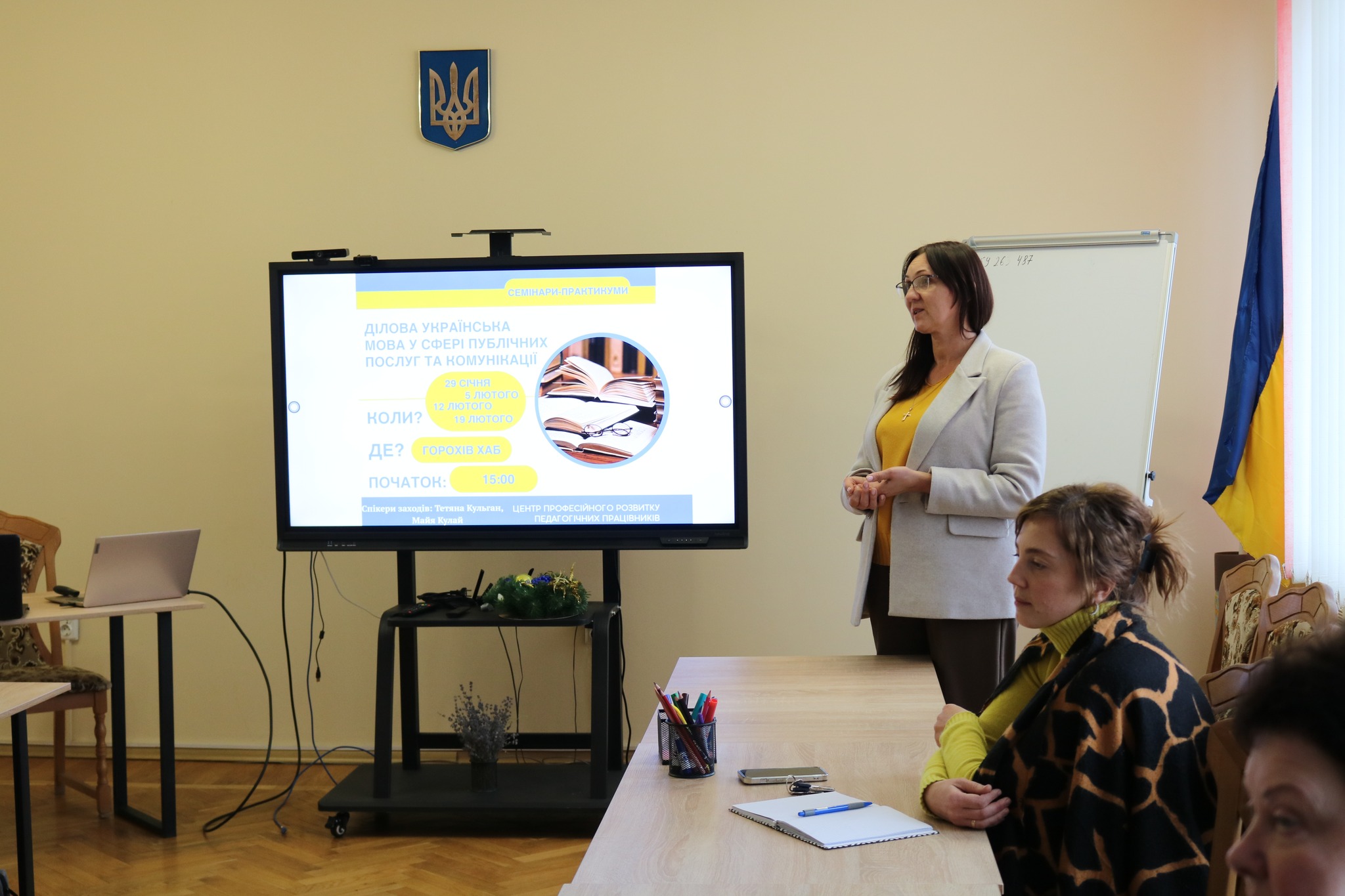 У сучасному світі якість надання публічних послуг визначається не лише швидкістю, а й культурою спілкування. З метою вдосконалення мовної компетентності посадовців, Центр професійного розвитку педагогічних працівників розпочав серію практичних семінарів «Ділова українська мова у сфері публічних послуг та комунікації».