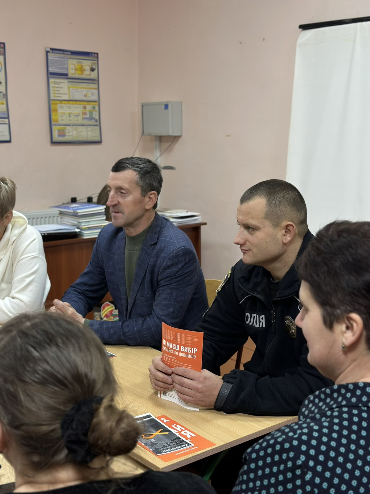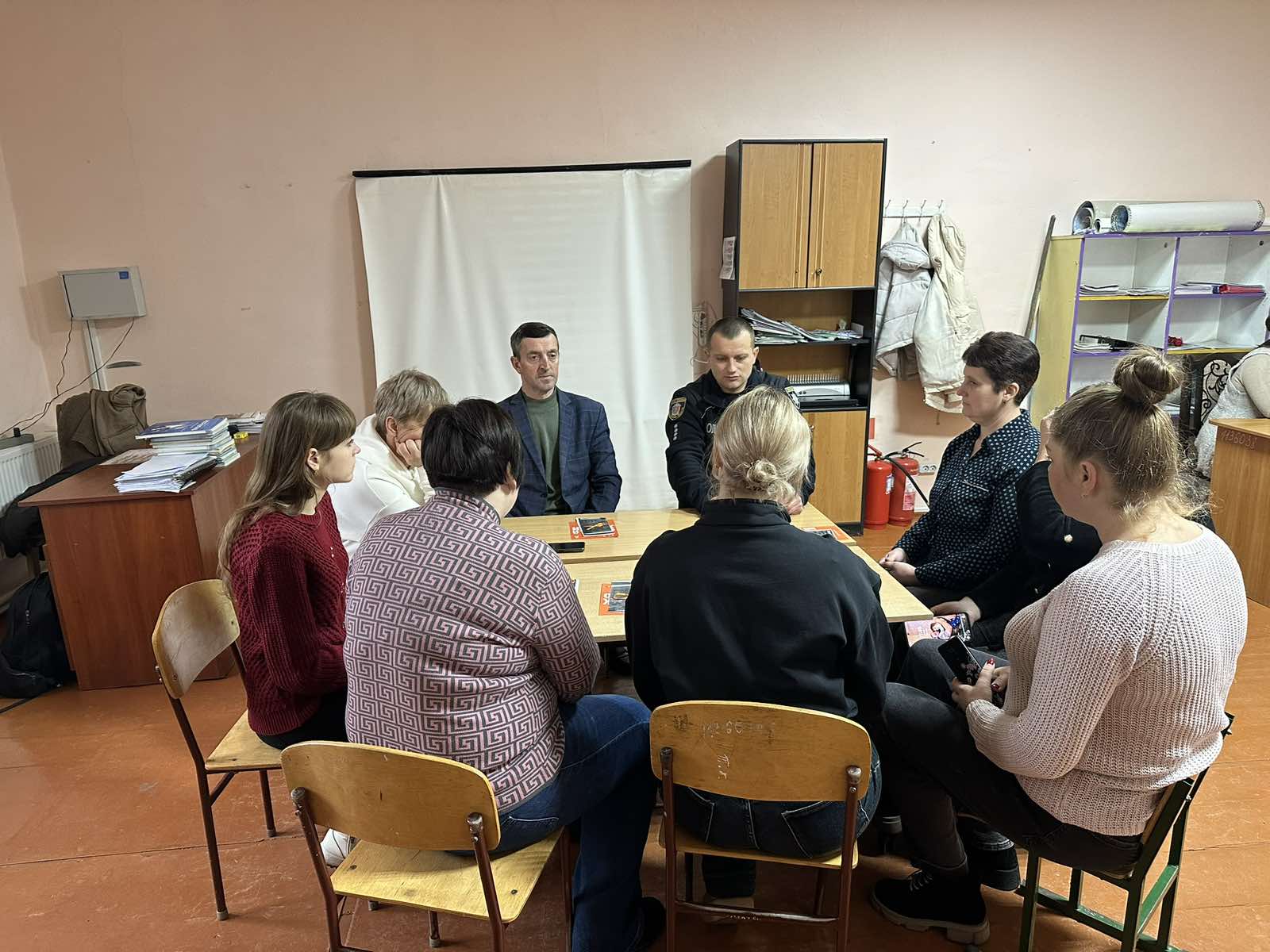 Під час зустрічі було доведено стан оперативної обстановки на території громади, кількість підоблікових осіб, звернуто увагу на сім’ї, які перебувають у складних життєвих обставинах, обговорено аспекти протидії та документування фактів домашнього насильства а також протидії фактам вчинення шахрайських дій по телефону та мережі інтернет.